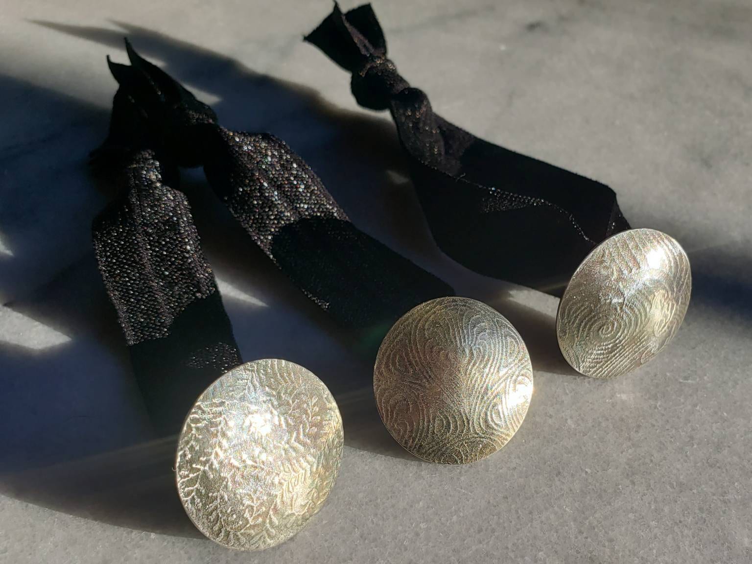 Recycled sterling silver disc is patterned with a beautiful design. Choose from these elegant and classic motifs: