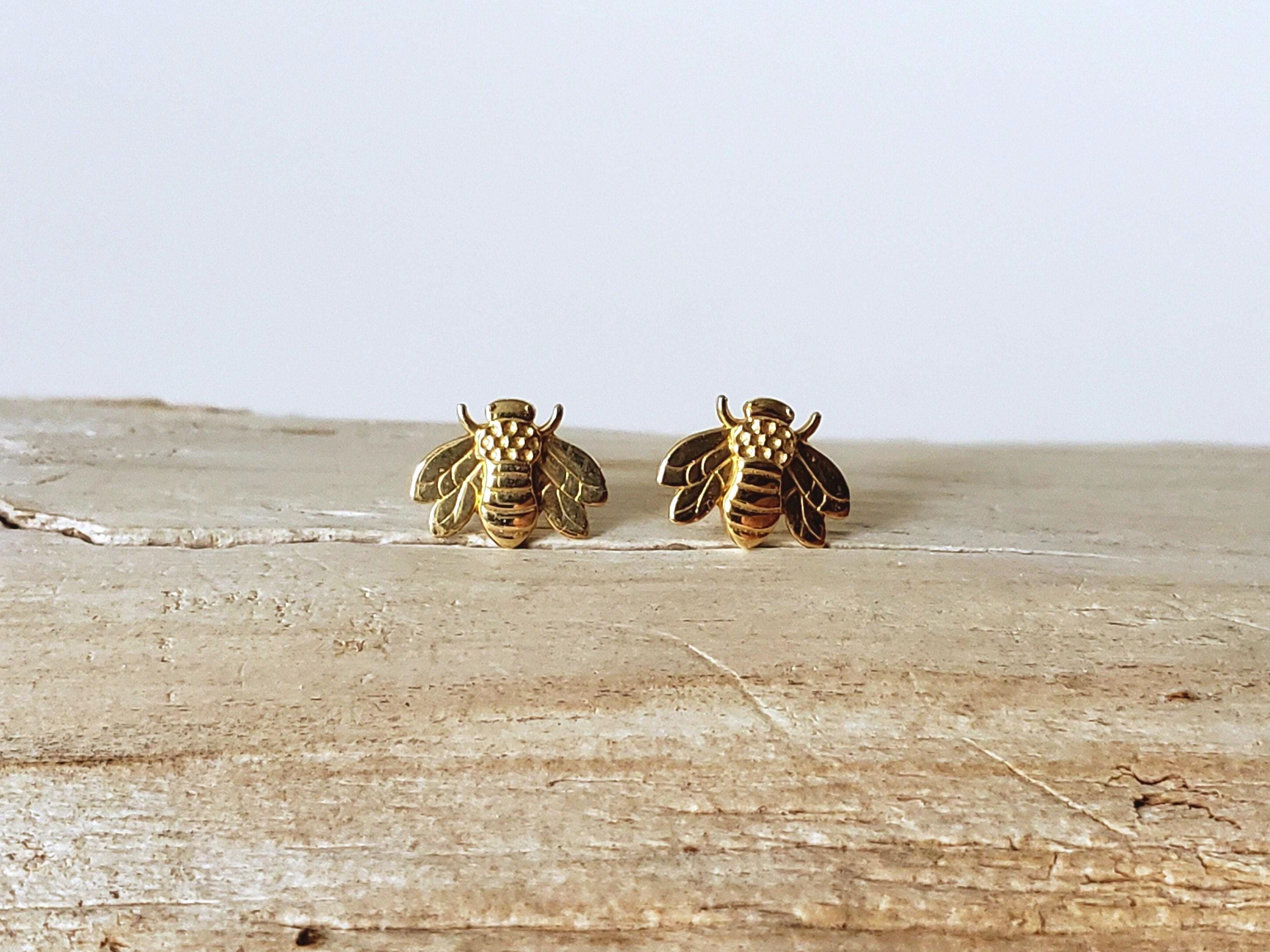 Listing is for one pair of solid 14k gold bee earrings & backs.