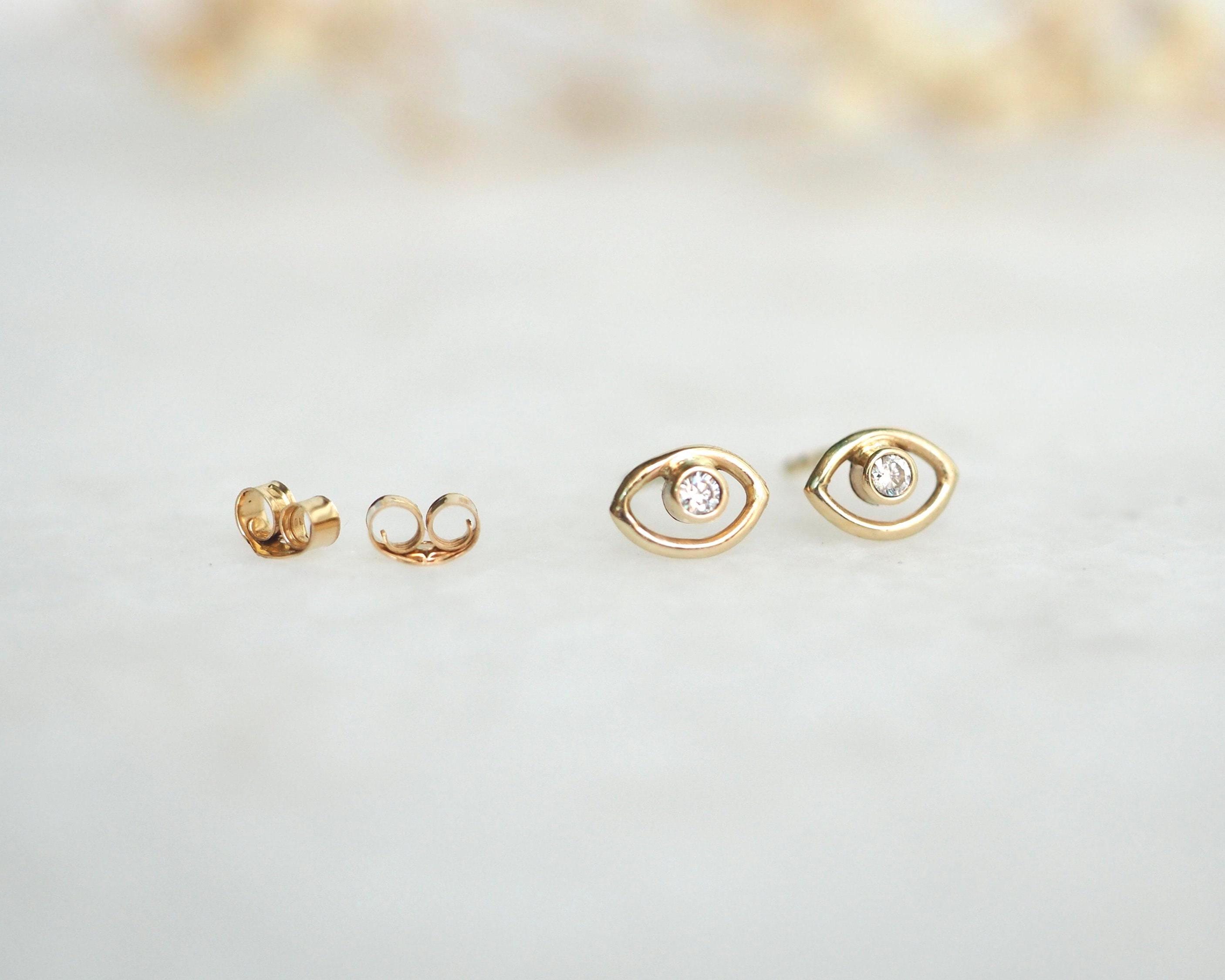 These cool little studs are elegant and full of sparkles. Solid 14k gold earring backs are included.
